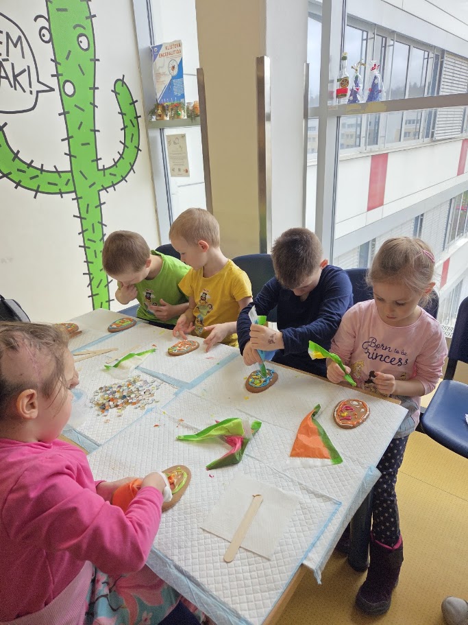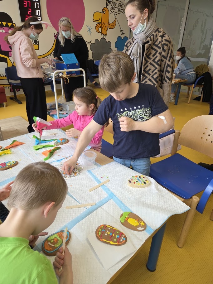 . Odpoledne jsme pak tvořili s dětmi na pokojích a také v herně na oddělení. Tvoření mělo velký úspěch nejen u dětí, ale i u rodičů, kteří se do něj aktivně zapojili